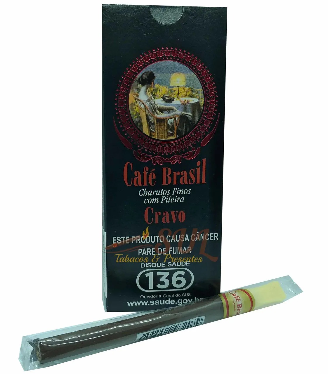 As Cigarrilhas Café Brasil são confeccionadas com tabacos em folha e tabacos picados. Também conhecidas como charutos finos. Tem piteira dando mais charme e sustentação a cigarrilha, de origem nacional, tabaco desfiado capa homogeneizado com aroma de cravo.