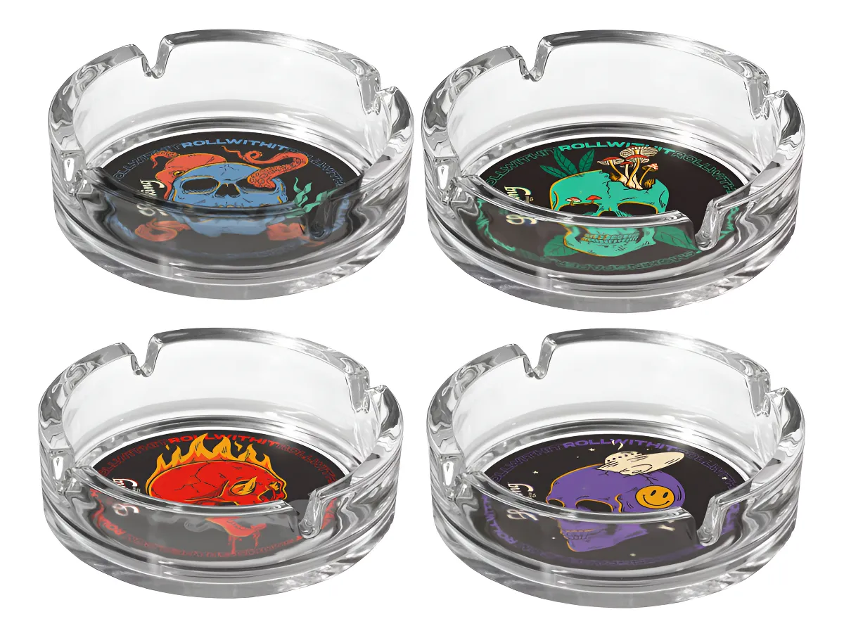 O Cinzeiro de Vidro Redondo Smoking combina estilo e praticidade em um design clássico e resistente. Fabricado em vidro espesso e durável, é ideal para uso em ambientes internos ou externos, garantindo fácil limpeza e longa vida útil. Seu formato redondo e acabamento brilhante trazem um toque elegante à mesa, balcão ou área de lazer. Com estampas variadas.
