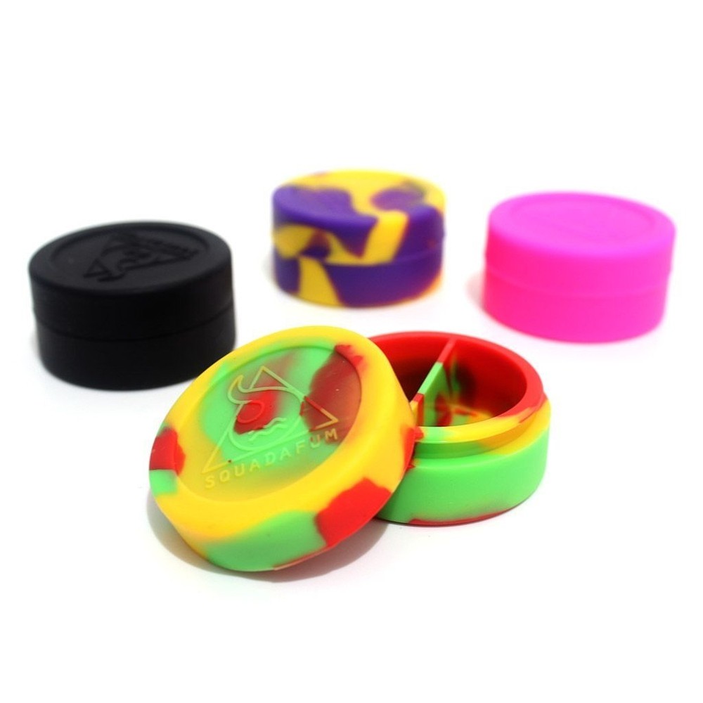 Container de silicone Squadafum com divisão médio, é resistente á altas temperaturas, ideal para armazenamento e manuseio de extrações, não deixa passar odor, lavável, material que evita que qualquer textura grude em sua superfície e não altera o sabor da sua crema, capacidade de armazenamento de 10ml.