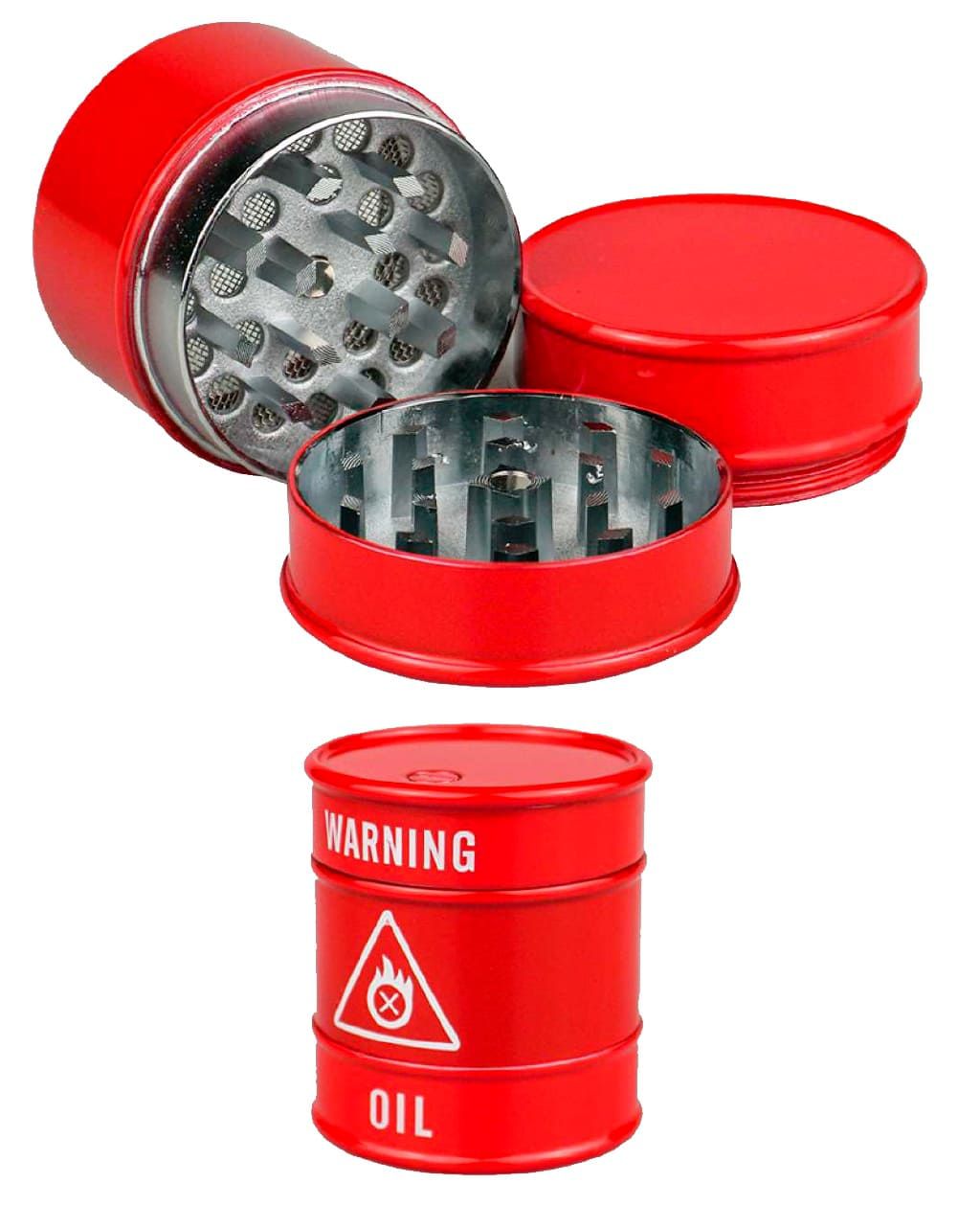 Dichavador de metal com formato de barril, tamanho grande, acabamento perfeito seu material é de metal trazendo durabilidade para o produto, dentes afiados de metal triturando perfeitamente, ele vem com três partes sendo a última para armazenamento da erva e íma central.