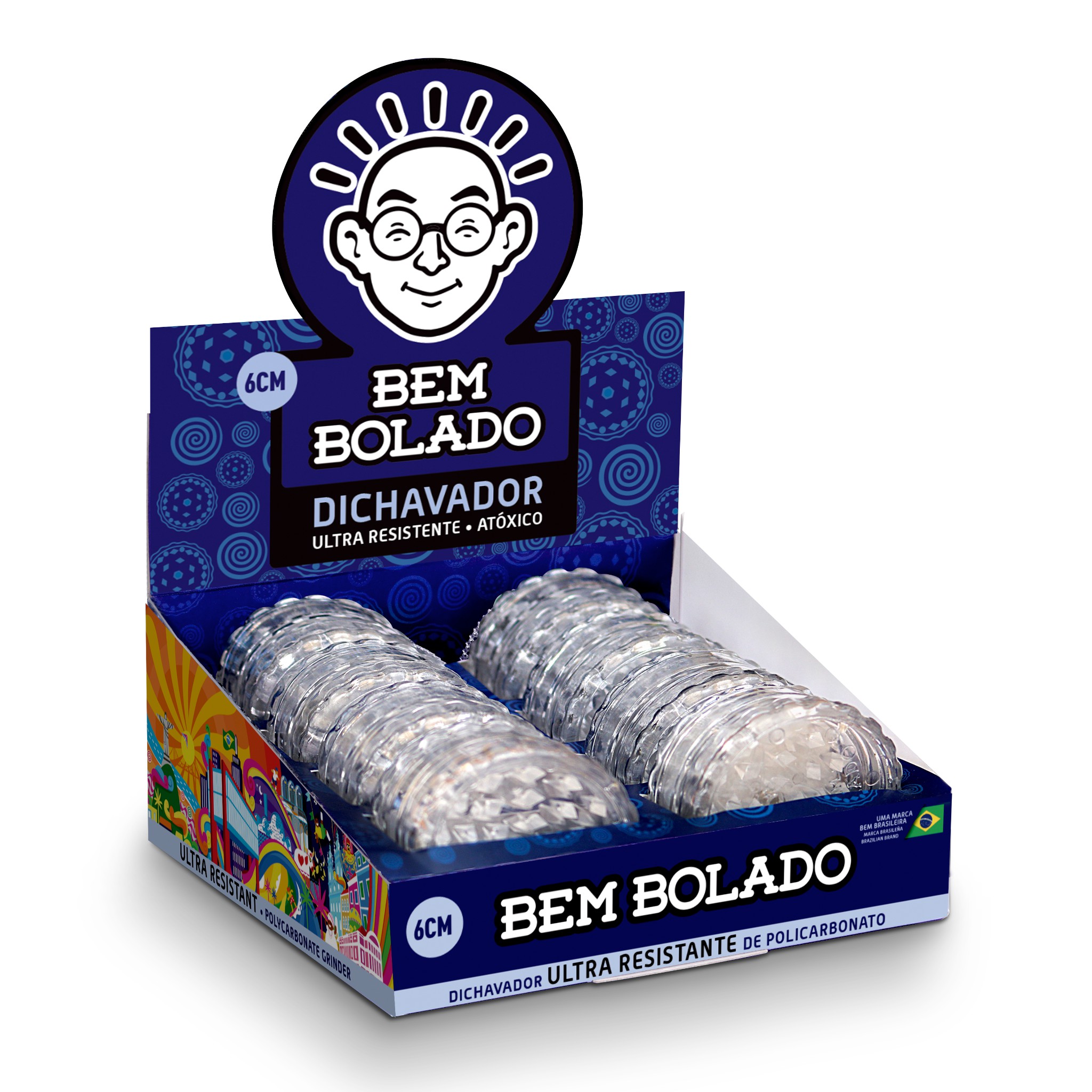 Produzido em policarbonato o desfiador Bem Bolado é famoso por sua ultra resistência e possui um design que foi criado especialmente para facilitar a rotação e processo de trituração. Ele também possuí um íma interno para facilitar seu fechamento e evitar aberturas indesejavéis. O melhor custo - benefício!