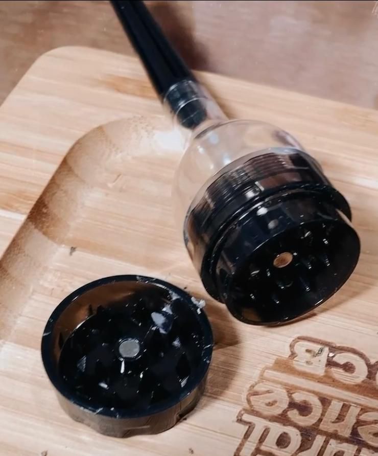 Dichavador de plástico com formato de dosador, tamanho médio, ele é perfeito tritura sua erva e armazena.